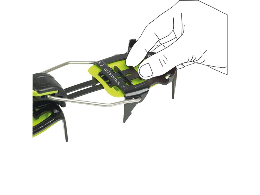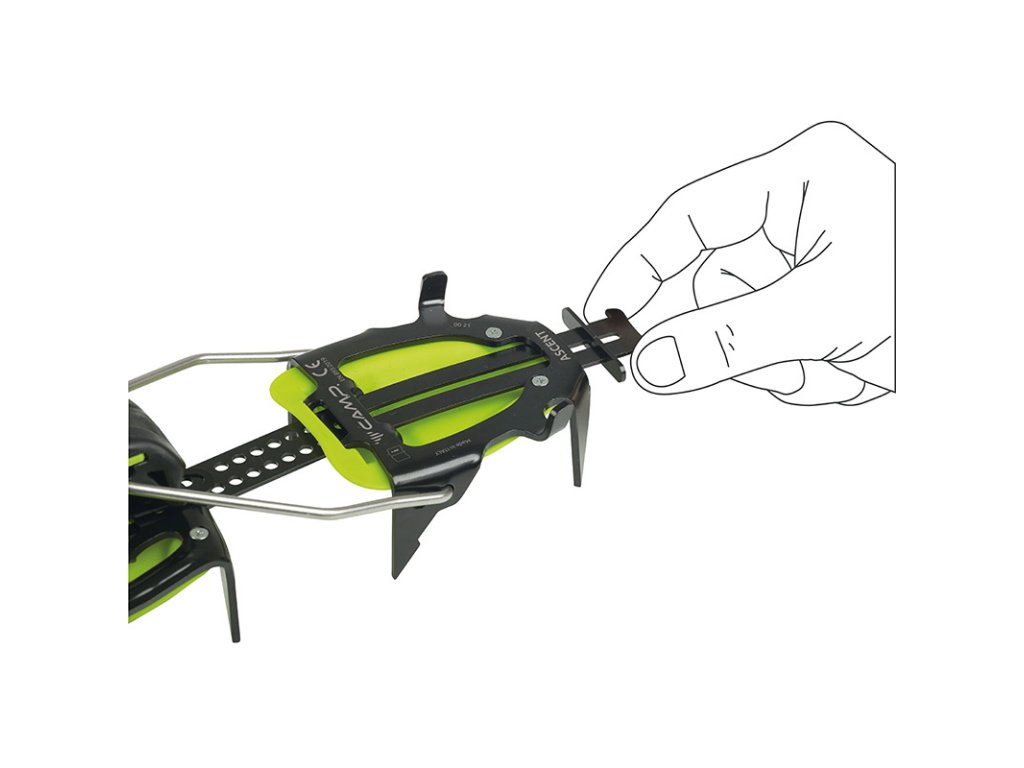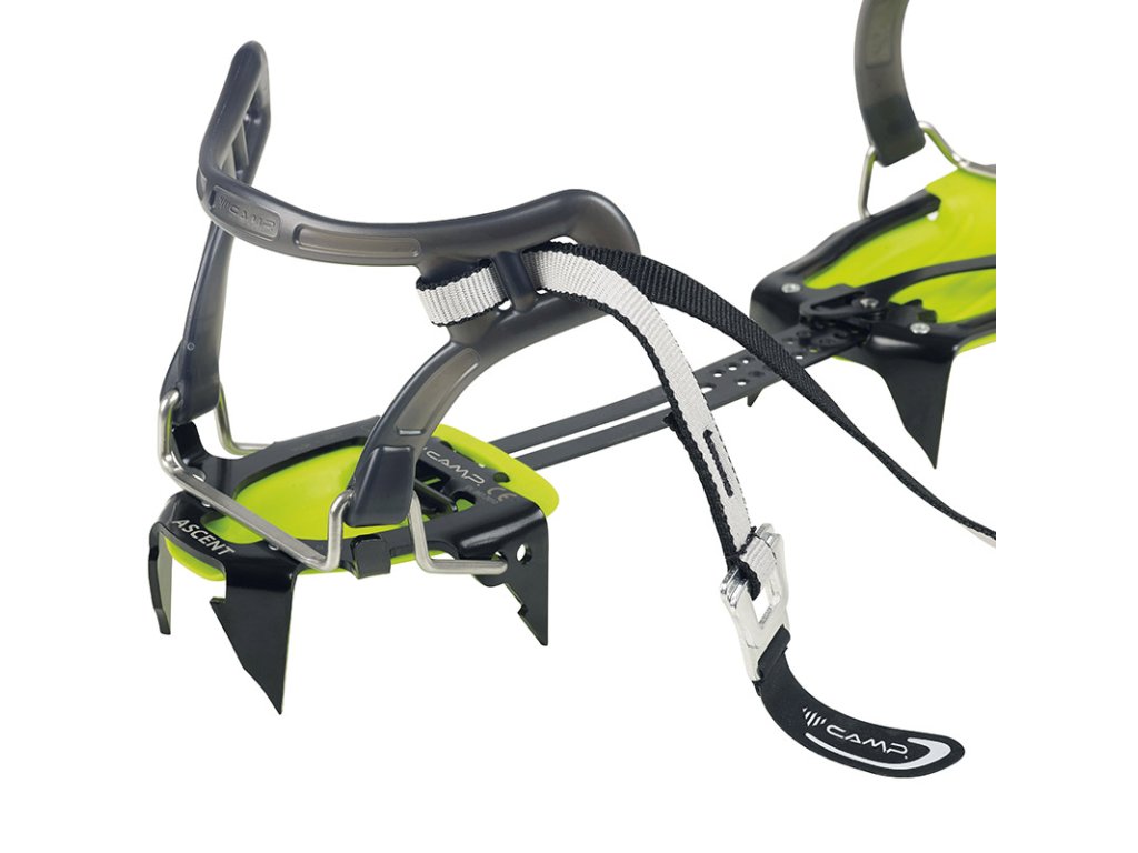 Ľahké oceľové 10 hrotové mačky Camp Ascent Universal vyhovujúce na väčšinu horolezeckých vibrám a topánok pre VHT. Celo oceľový rám má asymetrický tvar pre maximálne prispôsobenie tvaru topánky. Flexibilný kovový mostík umožňuje užívateľské nastavenie veľkosti v rozsahu 34 - 48 (EUR). Vďaka tomu sa dajú zbaliť do kompaktného obalu, ktorý je súčasťou mačiek. Pre zníženie hmotnosti a ešte lepšiu skladnosť je možné spojovací mostík nahradiť Dyneema mostíkom CAMP Dyneema linking strap (nie je súčasťou balenia)
