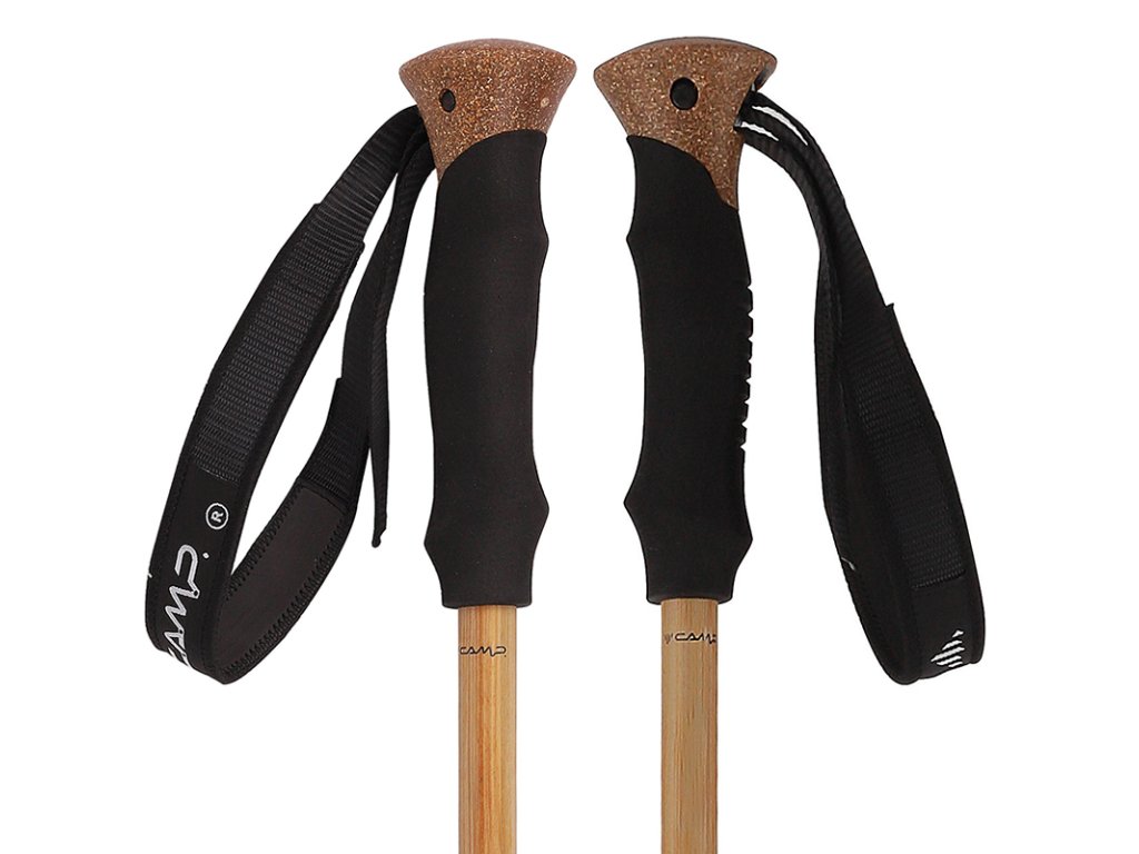 Výhodou madla sú aj ergonomicky tvarované pútka pre pravú a ľavú ruku. Bambus je príjemný na dotyk - nechladí ako kov a navyše s korkovým doplnkom je aj dizajnovou záležitosťou pre milovníkov prírody. Stredný segment je vyrobený z pevného karbónového vlákna kvôli zvýšeniu tuhosti palice. Spodný segment je z odolnej hliníkovej zliatiny, ktorá dobre absorbuje nárazy .