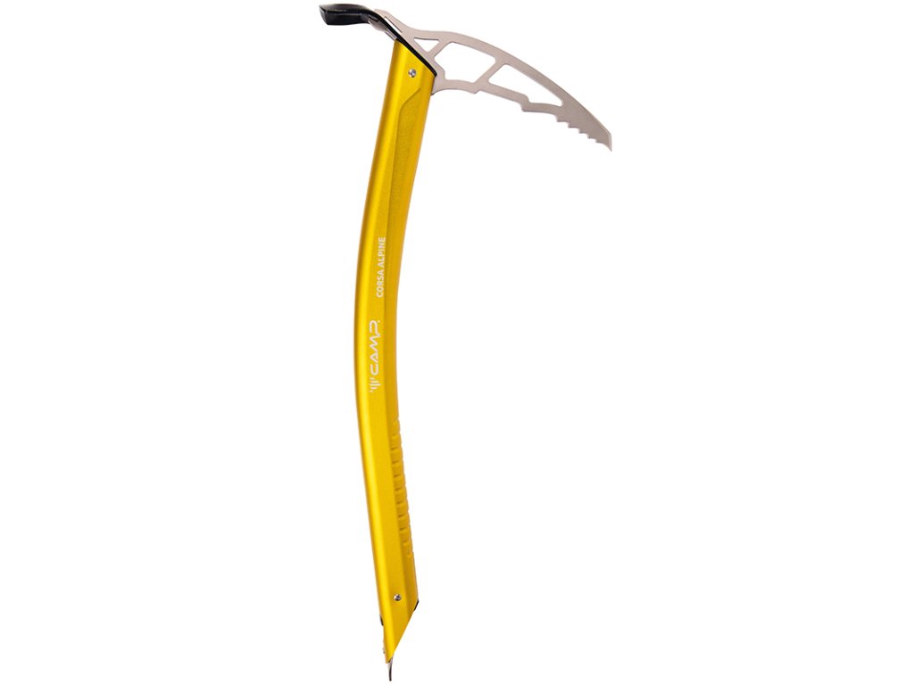 Camp Corsa Alpine je cepín s nízkou hmotnosťou, ktorá bola dosiahnutá menším množstvom materiálu na rúčke. Má laserom vyrezané dierky v oblasti uchytenia, čo zlepšuje uchopenie. Diery v hlave cepínu je možné použiť na prípadné uchytenie popruhu Corsa Leash. Jemne prehnutie je nápomocné pri strmých a náročnejších úsekoch, ale pritom neobmedzuje pri chôdzi. Hrot cepínu je široký 3mm, aby ho bolo možné jednoduchšie zaseknúť do ľadu. Hrot je chránený nylónovým nasúvacím chráničom.