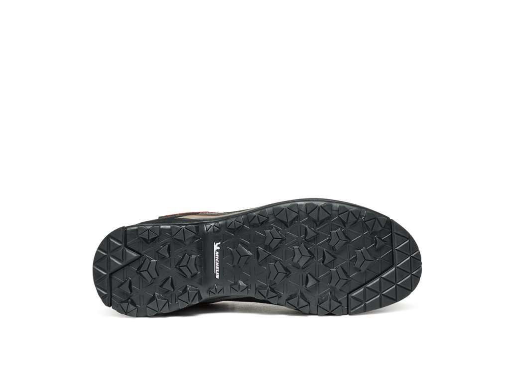 - Zvršok topánky je vyrobený z kombinácie odolných, ale ľahkých materiálov, ktoré chránia pred odrením a zároveň poskytujú potrebnú oporu