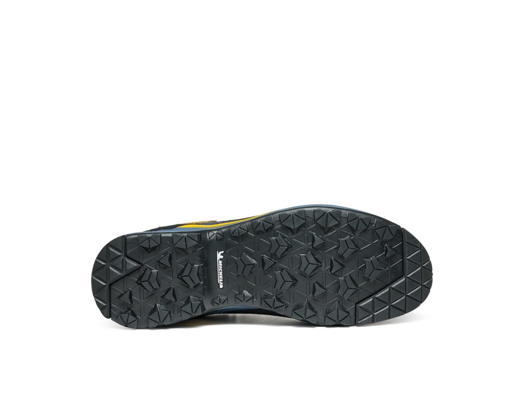 - Zvršok topánky je vyrobený z kombinácie odolných, ale ľahkých materiálov, ktoré chránia pred odrením a zároveň poskytujú potrebnú oporu
