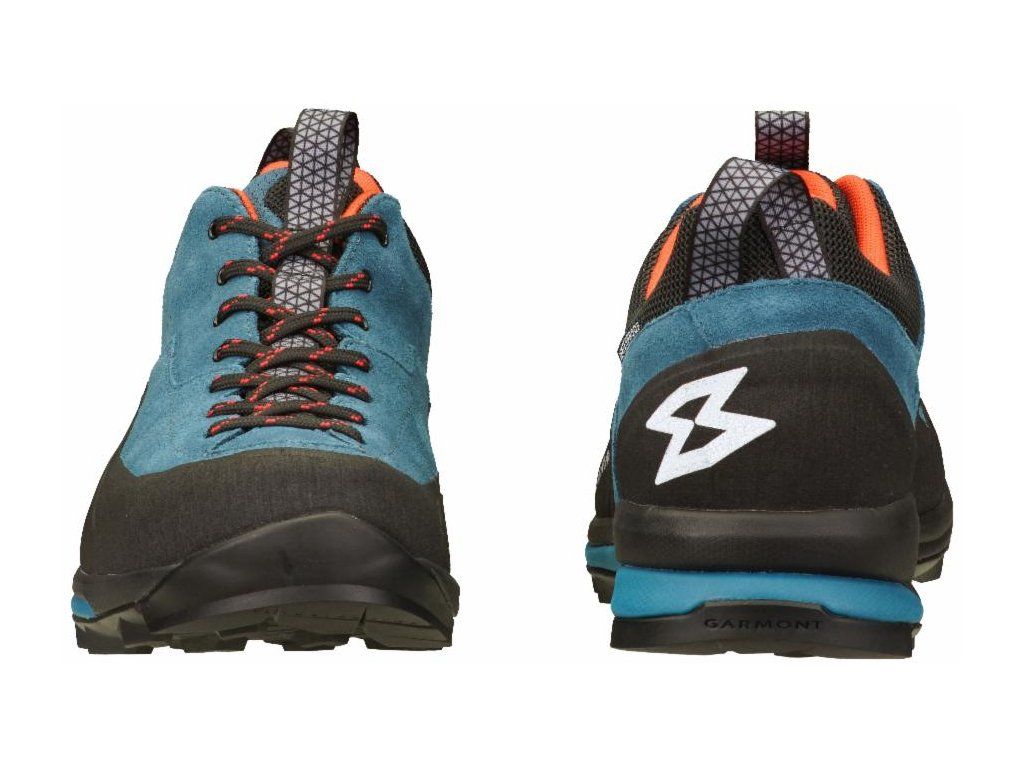 Zvršok je z robustnej semišovej kože chránená TPU obsádzkou. Topánky majú membránu G-Dry, ktorá zaisťuje nepremokavosť. Podrážka Garmont GTF má viacsmerný dezén, ktorý zaistí optimálnu stabilitu a trakciu na tvrdom, mäkkom či klzkom teréne, zatiaľ čo pod špičkou je lezecká zóna na lezenie v skalnatom teréne. Medzipodošva z EVA peny dvojitej hustoty s mäkkou PU vložkou poskytnú optimálne odpruženie.