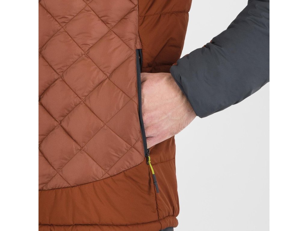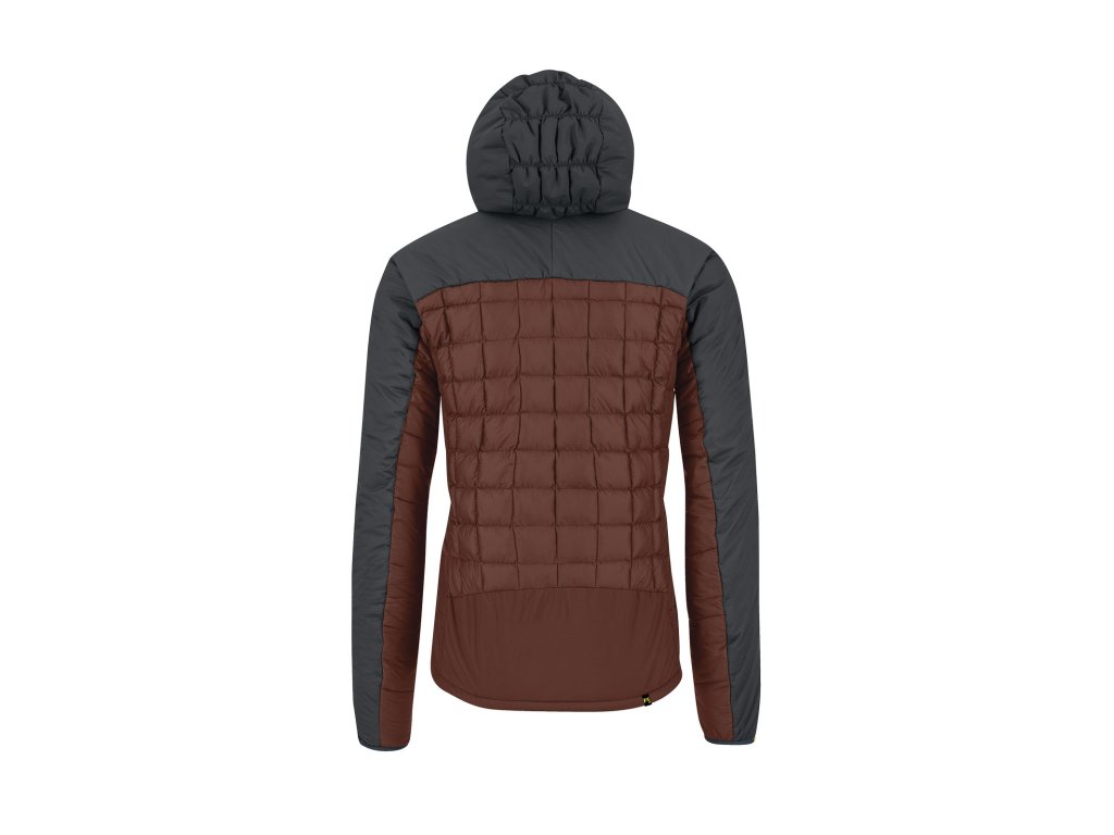 - Bunda je vybavená hybridnou izoláciou, ktorá spája dve rôzne technológie pre maximálny tepelný komfort. Na rukávoch, kapucni, bokoch a spodnej časti je použitý PrimaLoft® Silver Active 100 – ľahká, vysoko funkčná izolácia, ktorá zaručuje výbornú tepelnú ochranu bez nadmerného objemu. Na strednej časti tela je použitá K-Synthetic Down Micro, ktorá imituje vlastnosti prírodného peria, no je odolnejšia voči vlhkosti a rýchlo schne, čím udržiava optimálnu teplotu aj v extrémnych podmienkach.