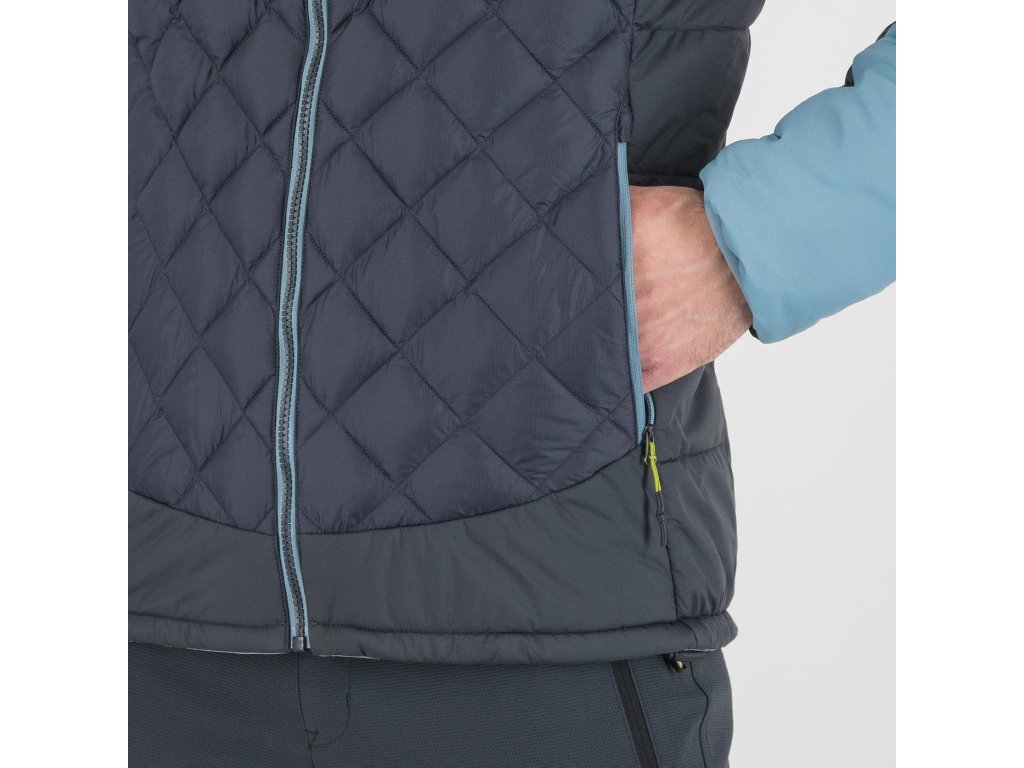 • Bunda je vybavená hybridnou izoláciou, ktorá spája dve rôzne technológie pre maximálny tepelný komfort. Na rukávoch, kapucni, bokoch a spodnej časti je použitý PrimaLoft® Silver Active 100 – ľahká, vysoko funkčná izolácia, ktorá zaručuje výbornú tepelnú ochranu bez nadmerného objemu. Na strednej časti tela je použitá K-Synthetic Down Micro, ktorá imituje vlastnosti prírodného peria, no je odolnejšia voči vlhkosti a rýchlo schne, čím udržiava optimálnu teplotu aj v extrémnych podmienkach.