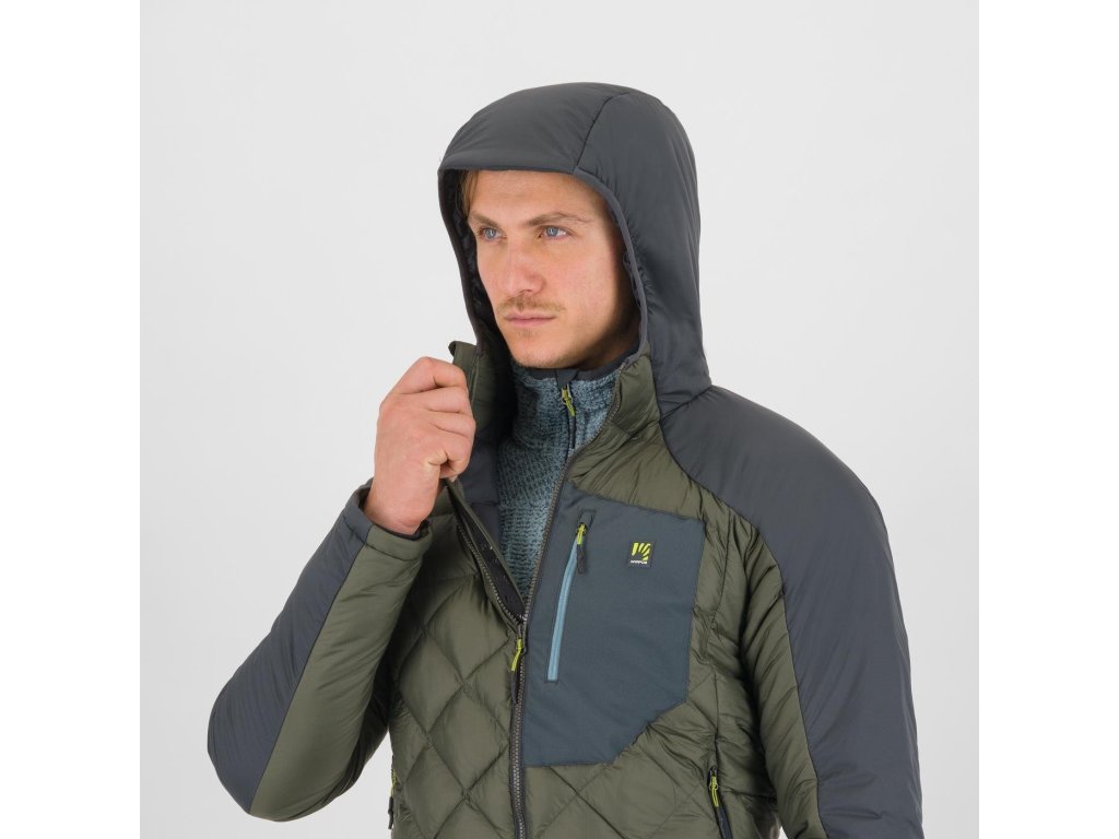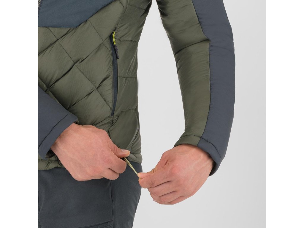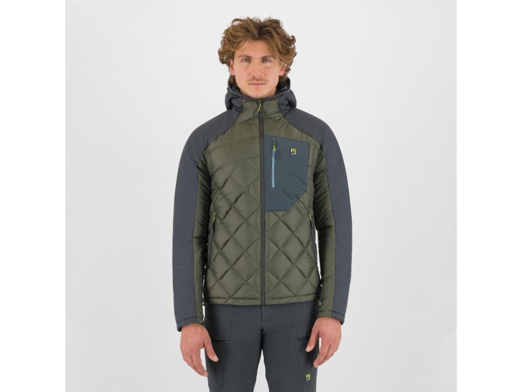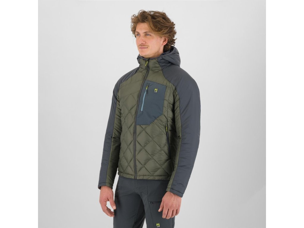 Má kapucňu a je vyrobená z nepremokavej tkaniny K-Dry na rukávoch, kapucni a spodnej časti odevu, čo zaisťuje hodnotu 20 000 mm vodného stĺpca. Tkanina Pertex® Quantum na prednej a zadnej časti poskytuje ochranu pred vetrom a vynikajúcu priedušnosť. Ľahká a skladná bunda váži len 559 g( velkost S), ale ponúka vysokú úroveň tepla vďaka hybridnej izolácii: PrimaLoft® Silver Active 100 na rukávoch, kapucni, bokoch a spodnej časti a K-Synthetic Down Micro v strednej časti, obe zo 100% recyklovaného polyesteru. Bunda navrhnutá tak, aby poskytovala teplo, ochranu a štýl v každej situácii.
