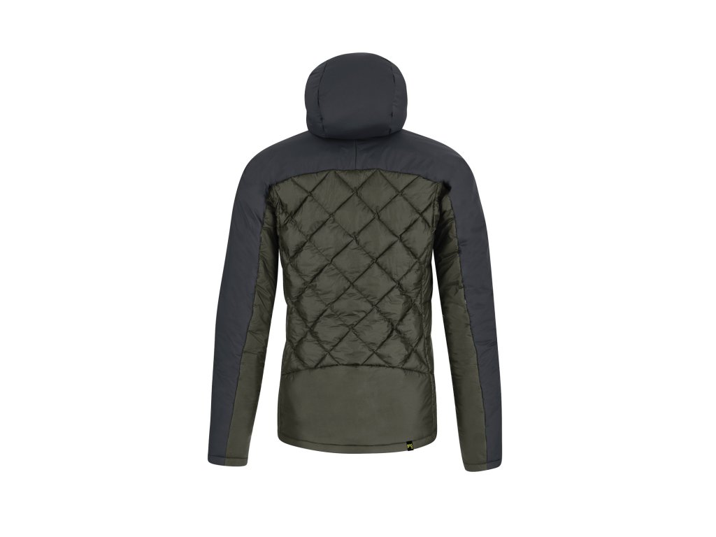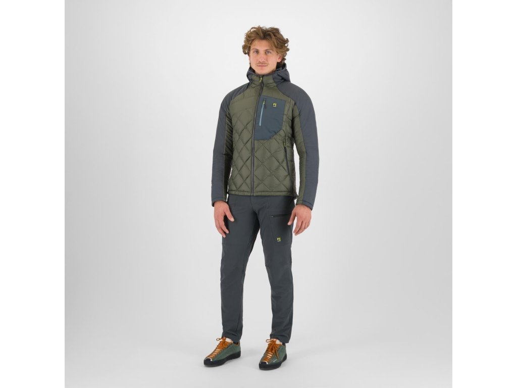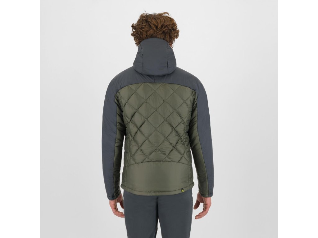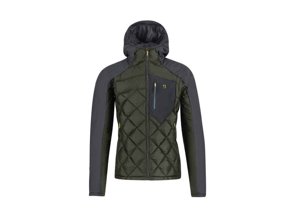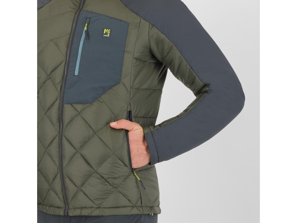 Má kapucňu a je vyrobená z nepremokavej tkaniny K-Dry na rukávoch, kapucni a spodnej časti odevu, čo zaisťuje hodnotu 20 000 mm vodného stĺpca. Tkanina Pertex® Quantum na prednej a zadnej časti poskytuje ochranu pred vetrom a vynikajúcu priedušnosť. Ľahká a skladná bunda váži len 559 g( velkost S), ale ponúka vysokú úroveň tepla vďaka hybridnej izolácii: PrimaLoft® Silver Active 100 na rukávoch, kapucni, bokoch a spodnej časti a K-Synthetic Down Micro v strednej časti, obe zo 100% recyklovaného polyesteru. Bunda navrhnutá tak, aby poskytovala teplo, ochranu a štýl v každej situácii.
