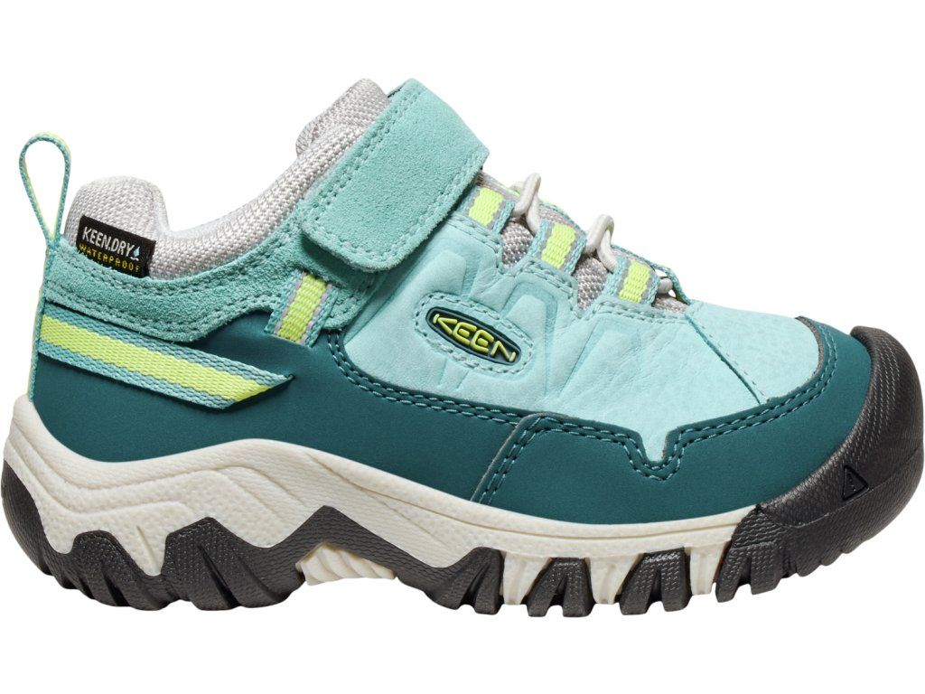 Nízka, ľahká, nepremokavá obuv KEEN Targhee Low s membránou KEEN.DRY z kolekcie detskej obuvi, vhodná na voľnočasové aktivity, turistiku a objavovanie nových dobrodružstiev. Zvršok topánky je vyrobený z vodeodolnej kože a pevnej sieťoviny. V prednej časti ponúka topánka patentovanú ochranu prstov KEEN.PROTECT, medzipodrážka je vyrobená z EVA peny, po stranách nad podošvou je vybavená odolným koženým lemom.