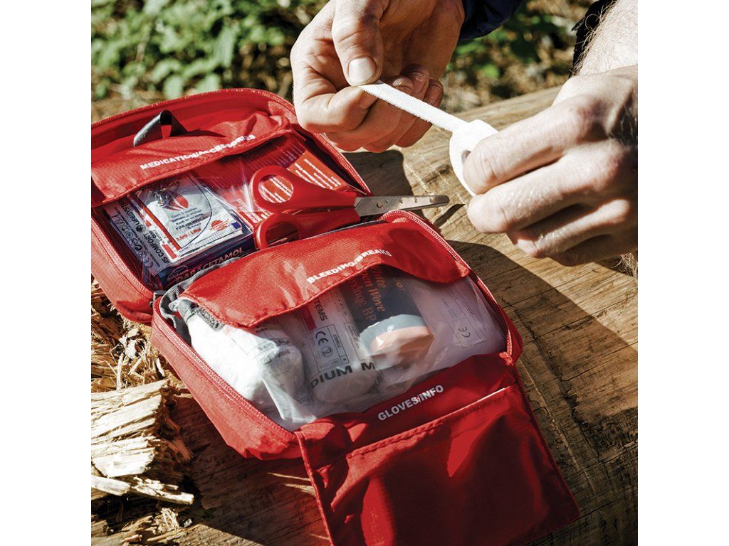 Veľmi dobre vybavená prvá pomoc, ktorá vám umožní poradiť si s väčšinou bežných zranení. Vďaka systému QuickFind nájdete všetko hneď, bez prehrabovania celej lekárne. Quick Find System bol spracovaný na základe spolupráce se svetovo uznávanými tímami záchranárov a horských služieb. Kompletne rozkladací systém poskytuje maximálnu orientáciu a prehľad v usporiadaných sekciách lekární. Po jej rozbalení tak máte k dispozícii oddelené sekcie s náplasťami, obväzmi, atď. Rozbalená lekárnička sa dá navyše ľahko zavesiť pomocou vnútorného pútka. Odporúčame lekárničku doplniť o kartu na kliešte a ALU fóliu.
