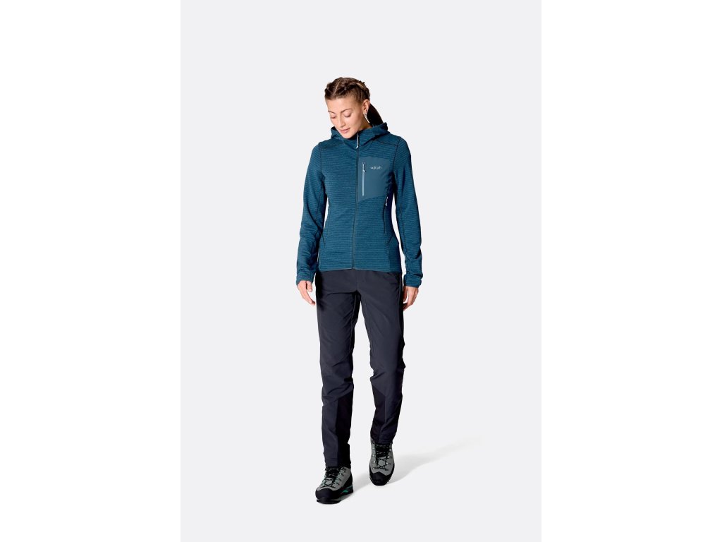 Dámska mikina s kapucňou Ascendor Light Hoody je tenká a prispôsobiteľná stredná vrstva, udrží vás v teple, rýchlo odvádza pot. Je vyrobená z ľahkého materiálu Thermic™ S, ktorý efektívne izoluje a dýcha, čo oceníte pri rýchlom a vertikálnom pohybe v horách. Kapucňa veľmi dobre sedí pod prilbou, prilieha tesne okolo tváre a zvyšuje ochranu pred únikom tepla, keď klesne teplota, alebo začne fúkať vietor. Pružný a štíhly strih mikiny a jej dĺžka pohodlne sedia aj pod sedákom a jej väčšia dĺžka zakrýva boky. Je to ideálna súčasť flexibilného vrstvenia pre vysokohorskú turistiku, horolezectvo a lezenie po celý rok.