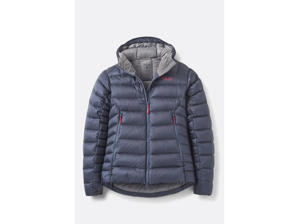 Ikonická Rab páperová bunda so špičkovým európskym husím perím plnivosti 800FP s hydrofóbnou úpravou Grangers v kombinácii s osvedčeným neprefúkavým materiálom Pertex Quantum.