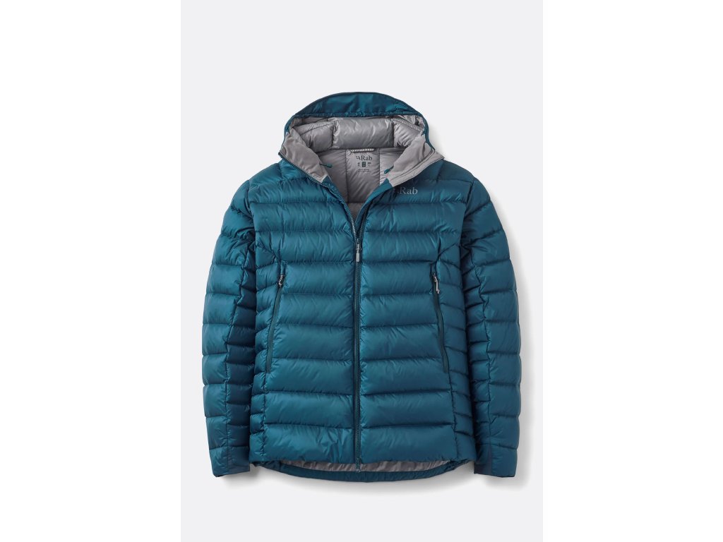 Ikonická Rab páperová bunda so špičkovým európskym husím perím plnivosti 800FP s hydrofóbnou úpravou Grangers v kombinácii s osvedčeným neprefúkavým materiálom Pertex Quantum.