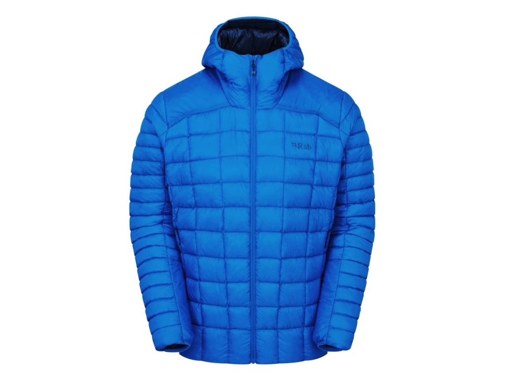 Rab aj pri tomto modeli využil nový strih bundy s „predkrútenými“ rukávmi umožňujúcimi ešte väčšiu voľnosť pohybu paží toľko potrebnej pre horolezecké aktivity a navyše šetrí hmotnosť. Toto sa ťažko popisuje, určite odporúčame vyskúšať, pretože akonáhle tento kúsok hodíš na seba, hneď budeš vedieť o čom hovoríme. Bunda je celkovo skôr užšieho strihu. Rovnako pekne sedí aj kapucňa ktorej tesnosť zaisťuje, rovnako ako konce rukávov, elastický lem. Drží na hlave ako pribitá a pri pohybe sa kapucňa hýbe s vami a nijako nebráni voľnosti pohybu a periférnemu videniu, ale nie je určená na použitie cez prilbu. Spodný lem bundy je ošetrený protišmykovou úpravou a je jednostranne nastaviteľný. Centrálny zips YKK® je zakončený fleecovou podšívkou na ochranu brady. Dve veľké zipsové (tiež YKK) vrecká na ruky oproti predchodcovi potešia, ale v rámci úspory váhy nie sú podložené perím.