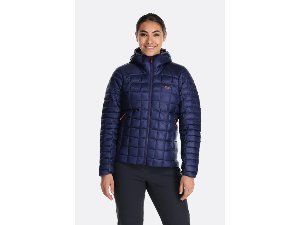 Rab aj pri tomto modeli využil nový strih bundy s „predkrútenými“ rukávmi umožňujúcimi ešte väčšiu voľnosť pohybu paží toľko potrebnej pre horolezecké aktivity a navyše šetrí hmotnosť. Toto sa ťažko popisuje, určite odporúčame vyskúšať, pretože akonáhle tento kúsok hodíš na seba, hneď budeš vedieť o čom hovoríme. Bunda je celkovo skôr užšieho strihu. Rovnako pekne sedí aj kapucňa ktorej tesnosť zaisťuje, rovnako ako konce rukávov, elastický lem. Drží na hlave ako pribitá a pri pohybe sa kapucňa hýbe s vami a nijako nebráni voľnosti pohybu a periférnemu videniu, ale nie je určená na použitie cez prilbu. Spodný lem bundy je ošetrený protišmykovou úpravou a je jednostranne nastaviteľný. Centrálny zips YKK® je zakončený fleecovou podšívkou na ochranu brady. Dve veľké zipsové (tiež YKK) vrecká na ruky oproti predchodcovi potešia, ale v rámci úspory váhy nie sú podložené perím.
