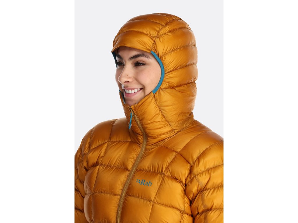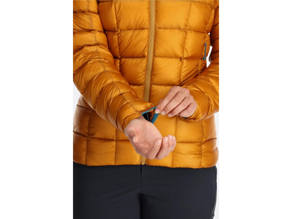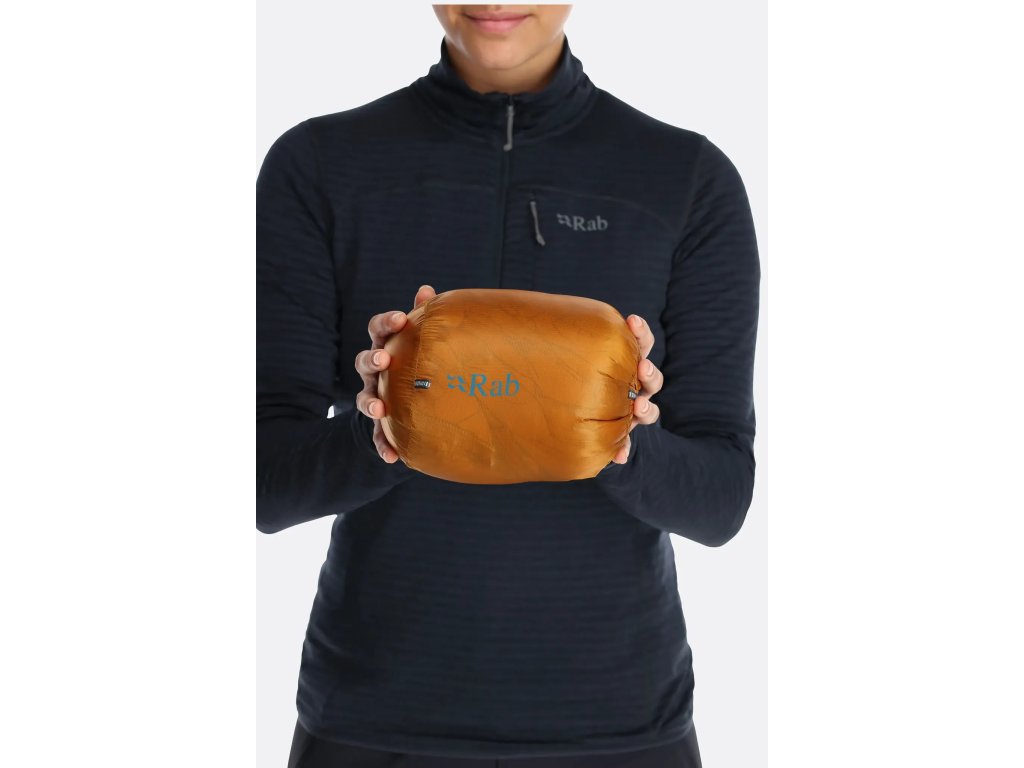 Bunda je plnená 130 gramami (vel. S) špičkového husieho peria s plnivosťou 900FP a hydrofóbnou úpravou od Nikwax. Vonkajší aj vnútorný materiál je rokmi preverený, extrémne ľahký ale napriek tomu pevný a neprefúkavý 10D Pertex® Quantum ripstop (28 g/m²). Vonkajšie samozrejme s vodoodpudivou DWR úpravou, takže prečkáte menšiu prehánku alebo vytrvalejšie mrholenie aj bez znehodnotenia tepelnoizolačných vlastností peria. To navyše v Rabe ošetrili hydrofóbnou úpravou od Nikwax, ktorá zaistí, že si perie udrží oveľa dlhšie loft a nestratí tak rýchlo svoje izolačné vlastnosti po zvlhnutí. Obe spomínané úpravy sú, ako je u klimaticky neutrálnej spoločnosti Rab zvykom, bez floukarbónov. Extrémna ľahkosť vonkajšieho materiálu umožňuje perie maximálne sa "nafúknuť" a plne využiť vysoké izolačné vlastnosti 900 cuin peria.