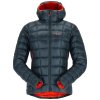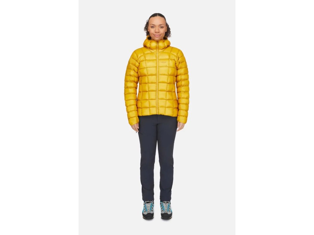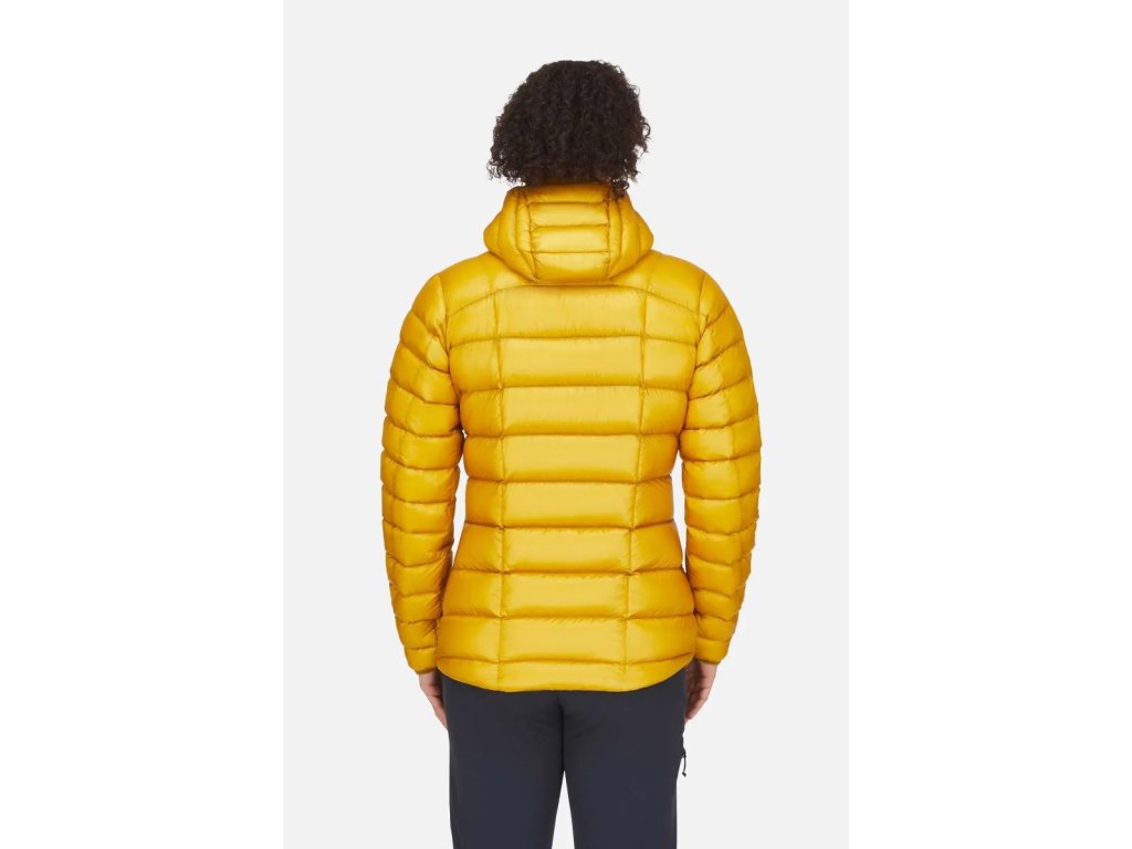 Bunda je plnená 130 gramami (vel. S) špičkového husieho peria s plnivosťou 900FP a hydrofóbnou úpravou od Nikwax. Vonkajší aj vnútorný materiál je rokmi preverený, extrémne ľahký ale napriek tomu pevný a neprefúkavý 10D Pertex® Quantum ripstop (28 g/m²). Vonkajšie samozrejme s vodoodpudivou DWR úpravou, takže prečkáte menšiu prehánku alebo vytrvalejšie mrholenie aj bez znehodnotenia tepelnoizolačných vlastností peria. To navyše v Rabe ošetrili hydrofóbnou úpravou od Nikwax, ktorá zaistí, že si perie udrží oveľa dlhšie loft a nestratí tak rýchlo svoje izolačné vlastnosti po zvlhnutí. Obe spomínané úpravy sú, ako je u klimaticky neutrálnej spoločnosti Rab zvykom, bez floukarbónov. Extrémna ľahkosť vonkajšieho materiálu umožňuje perie maximálne sa "nafúknuť" a plne využiť vysoké izolačné vlastnosti 900 cuin peria.