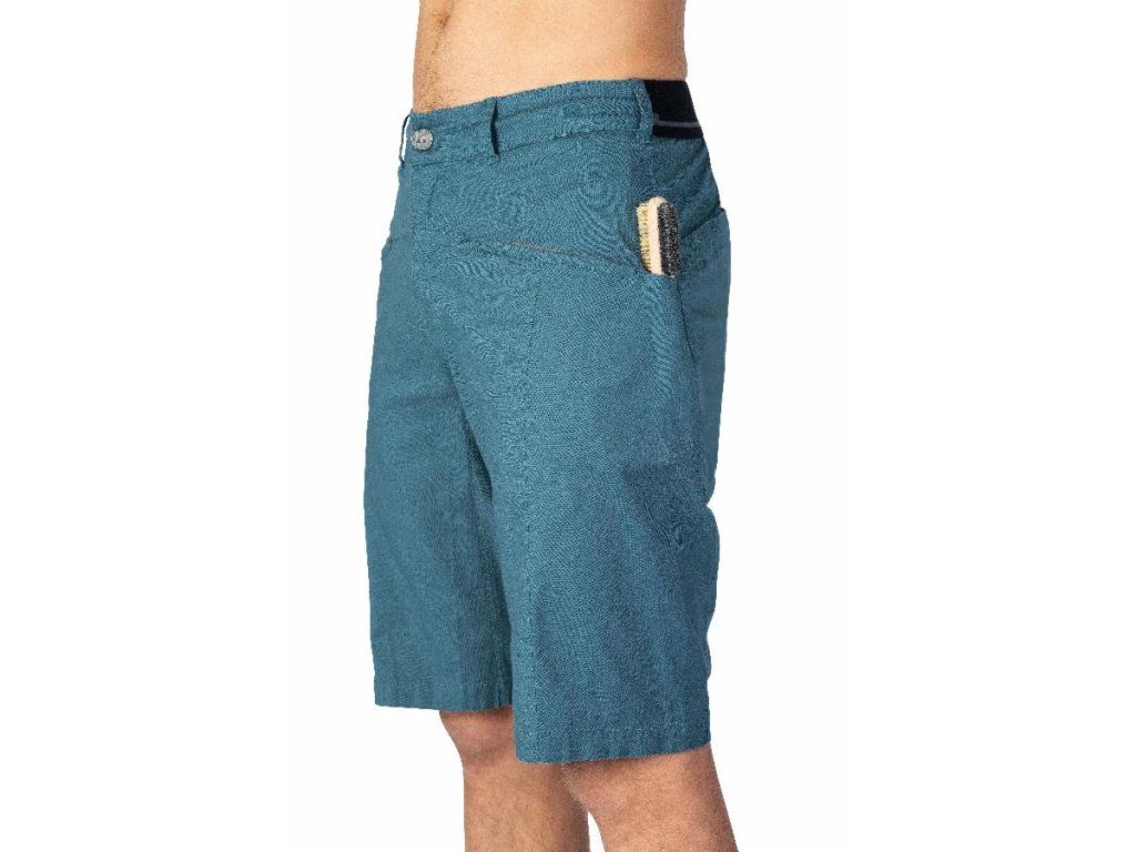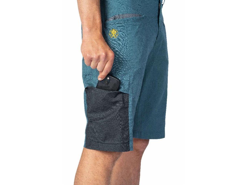 Všitý klin zaistí väčší rozsah pohybu a na kraťasoch nájdete 2 predné vrecká s výrazne lemovanými vstupmi a nezačistenými okrajmi, 2 zadné vrecká a navyše jedno na stehne. Vášmu ostriežamu zraku potom nesmie uniknúť ani šieste vrecko na „boulder brush“. Tá je rafinovane schovaná na bok a je súčasťou hlavného vrecka.