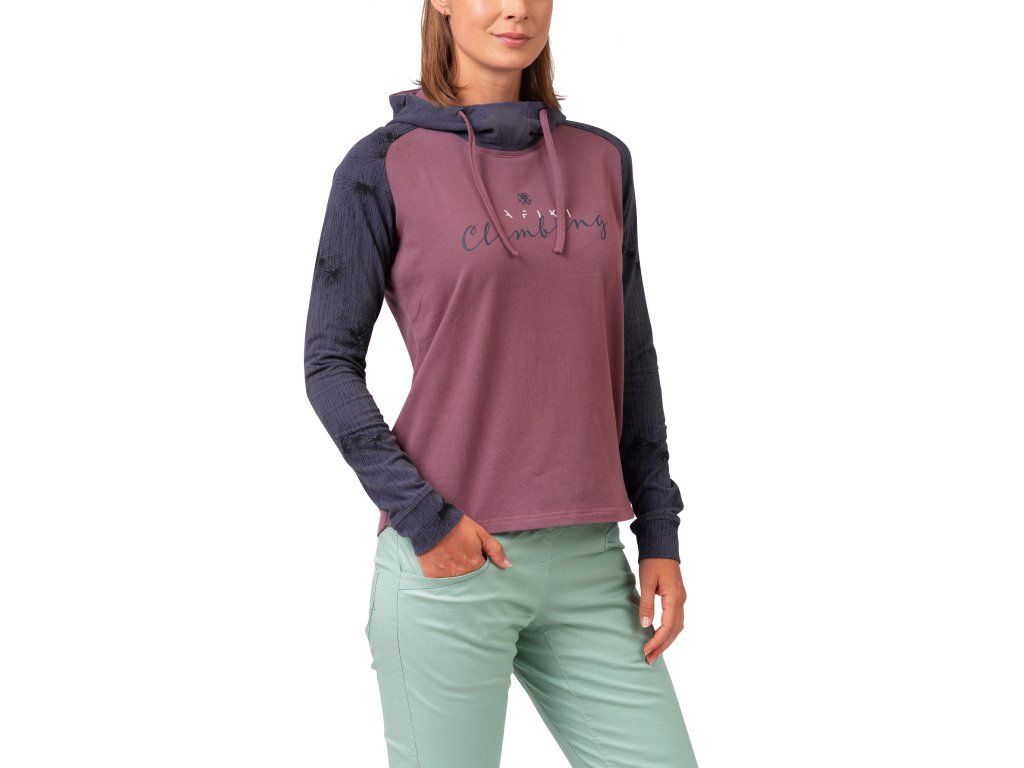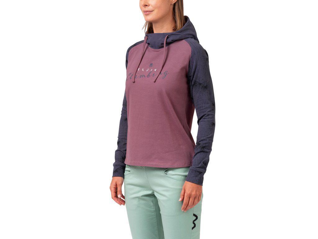 Ľahká a priedušná mikina s kapucňou zo 100 % organickej bavlny. Materiál je ľahký a veľmi príjemný nielen na dotyk, ale aj pri samotnom nosení. Vďaka elastanu je dostatočne pružná a hodí sa na rozcvičku pred lezením.