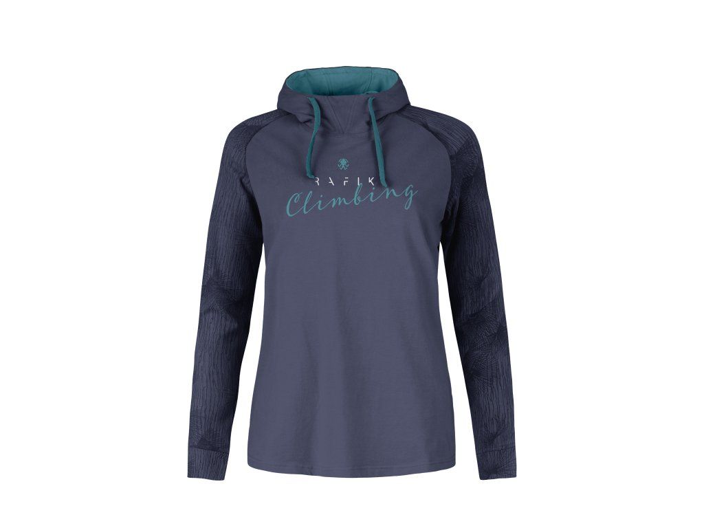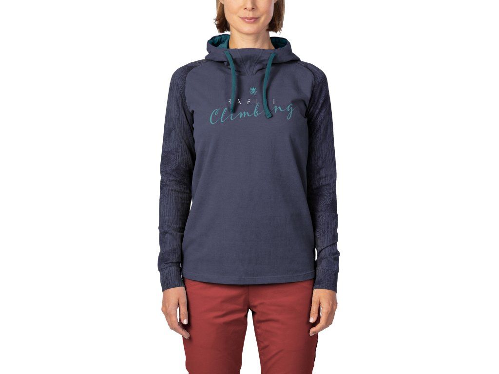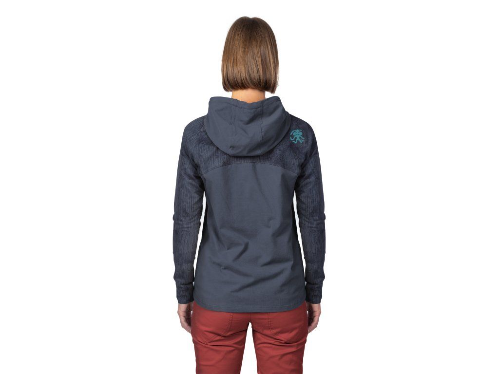 Ľahká a priedušná mikina s kapucňou zo 100 % organickej bavlny. Materiál je ľahký a veľmi príjemný nielen na dotyk, ale aj pri samotnom nosení. Vďaka elastanu je dostatočne pružná a hodí sa na rozcvičku pred lezením.
