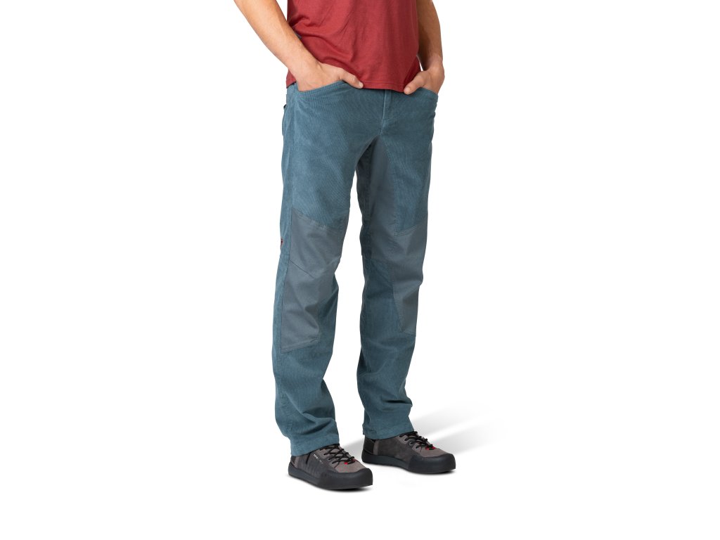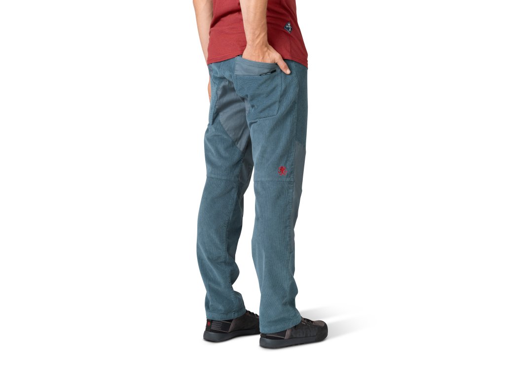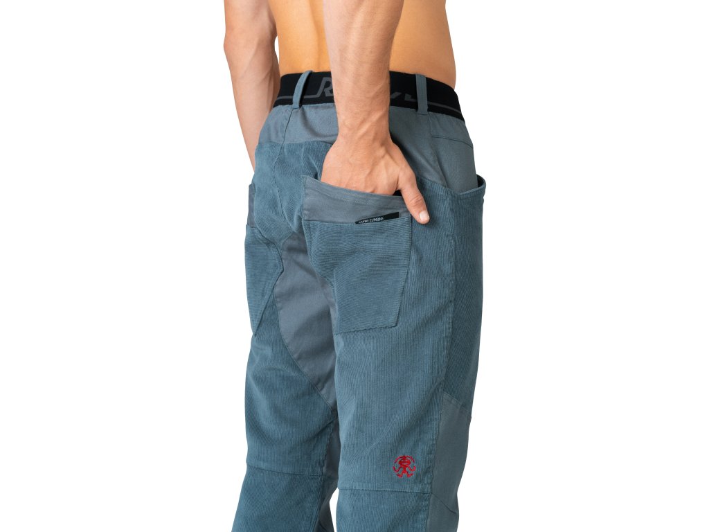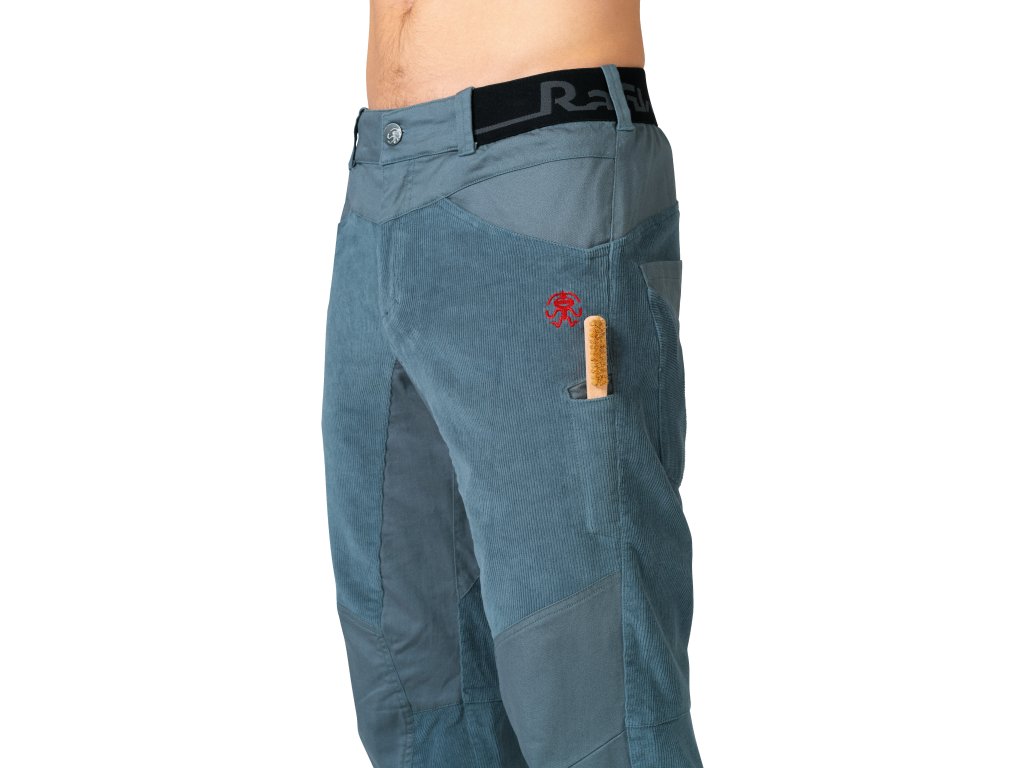 Lezecké menčestráky od Rafiki! U tohto špeciálneho kúsku sú skombinované dva typy materiálu: mäkší menčester a odolnejší materiál na tých najviac namáhaných a zaťažovaných miestach.