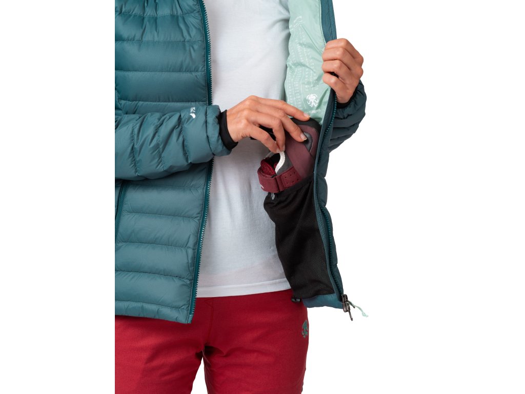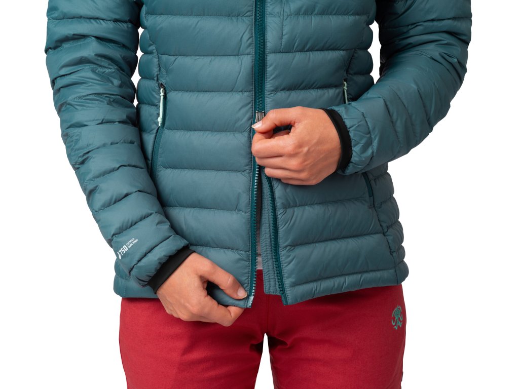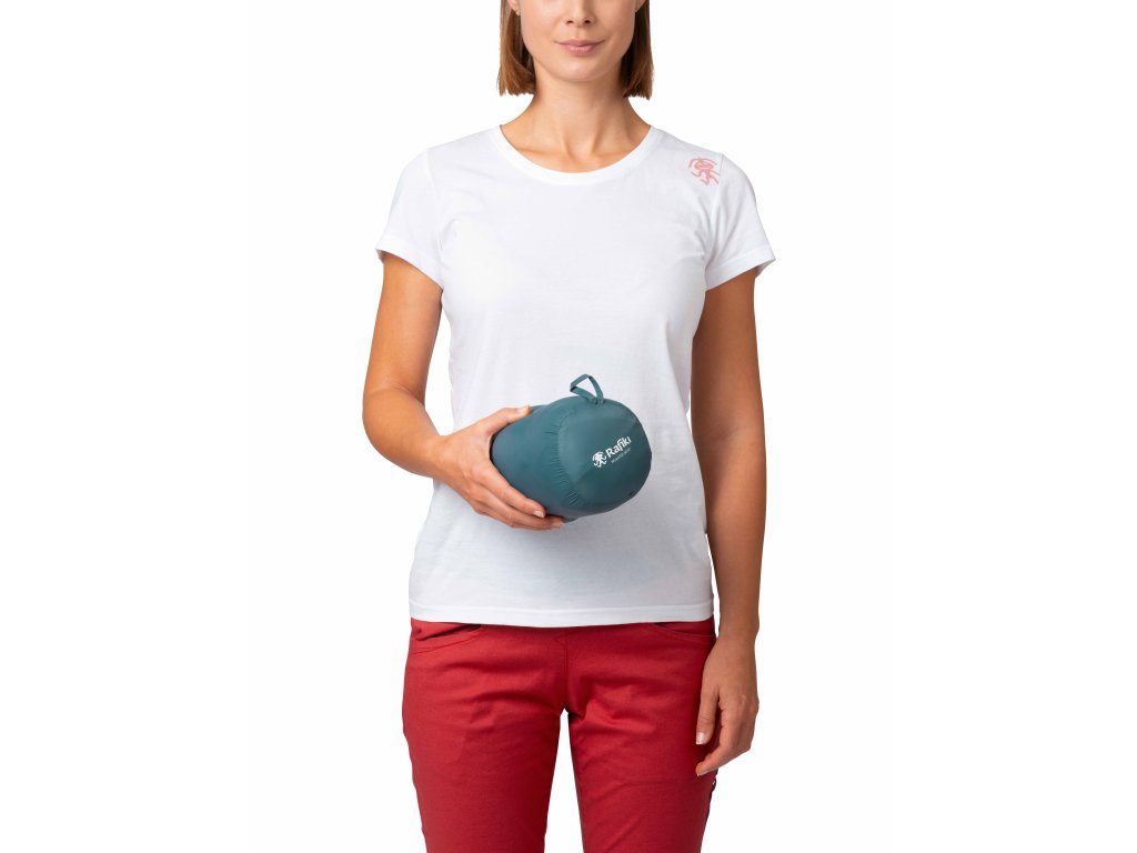 Výplň z certifikovaného kačacieho peria a vonkajší materiál z recyklovaného polyamidu s DWR úpravou bez obsahu PFC sú ideálnou ochranou počas sychravej jesene alebo chladnej letnej noci. Bundu navyše zbalíte do kompresného vrecka, takže vám skvele poslúži aj ako vankúš.