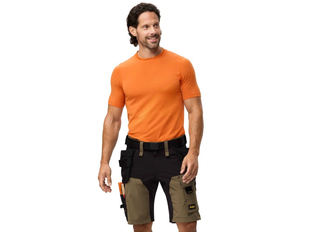 Funkčné tričko na spríjemnenie pracovného dňa. Termoregulačná technológia 37.5® zabudovaná vo vláknach tkaniny zaistí efektívny odvod telesnej vlhkosti pri zvýšenej aktivite či v parnom prostredí. Vďaka tomu zostanete v suchu po celý náročný deň. Ku komfortu prispieva aj ergonomický strih, ktorý umožňuje maximálnu voľnosť pohybu. Na hrudi napravo je decentné logo Snickers Workwear, ktoré je rovnako vtkané do tkaniny aj dole na chrbte.